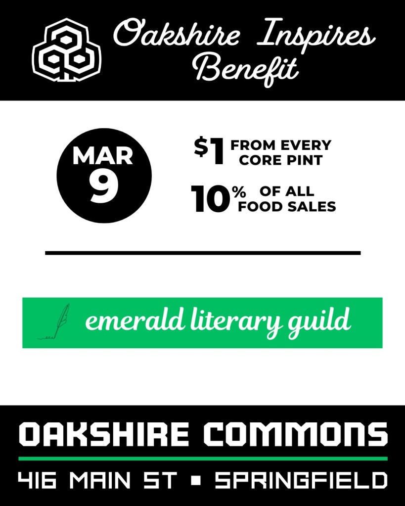 We invite you to join us for the Emerald Literary Guild’s release of The Anthology, a two-volume collection of the best writers in the Pacific Northwest and beyond. Come and celebrate with an evening of music, literature, and fantastic food at Oakshire Commons! The event features music from Theo Czuk & friends, plus our local area’s best literary talents, an open mic, and Oakshire’s delicious culinary offerings. $1 from every core pint plus 10% of all food sales go to the Emerald Literary Guild.